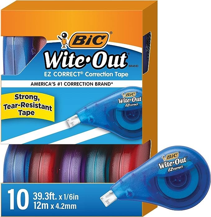 BIC Wite-Out Brand EZ Correct Correction Tape, 39.3 Feet, 10-Count Pack of white Correction Tape, Fast, Clean and Easy to Use Tear-Resistant Tape Office or School Supplies