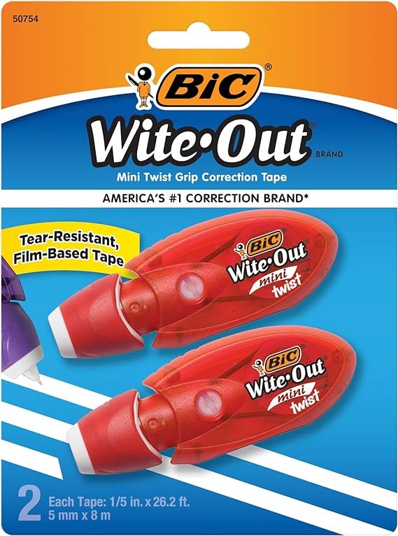 BIC Wite-Out Mini Twist Correction Tape, White, Tear-resistant, Compact and Film-Based Tape, 2-Count Pack (WOMTP21-WHI) (Packaging May Vary)